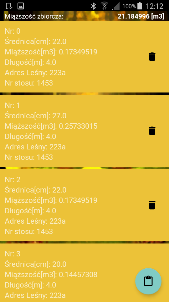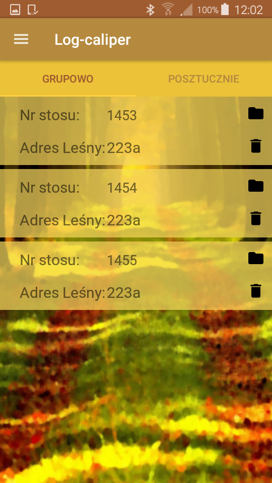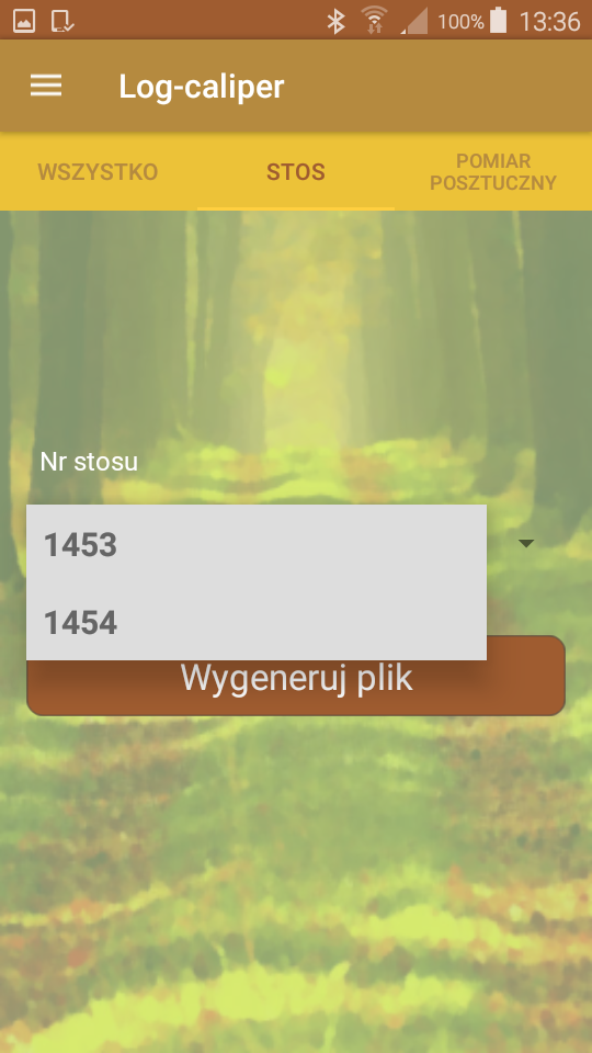 Przy pomiarze metodą grupową numer stosu wprowadza się tylko raz w momencie definiowania parametrów pomiaru. Następnie wprowadzane są tylko wartości średnic poszczególnych kłód za pomocą średnicomierza elektronicznego, lub ręcznie.
