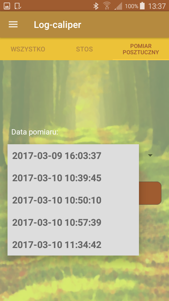 W opcji pomiaru posztucznego numer każdej kolejnej kłody wprowadzany jest tuż przed dokonaniem pomiaru średnicy. Numer sztuki może być wprowadzany ręcznie lub też przy pomocy skanera kodów zamocowanego na średnicomierzu. Aplikacja leśna Log-caliper jest tak zaprogramowana, że niemożliwe jest wprowadzenie do pamięci dwóch kłód o takim samym numerze.