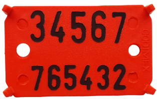 Oznaczniki dla jednostek organizacyjnych Lasów Państwowych w kolorze czerwonym z czarnym, dwuliniowym opisem wykonanym w technologii termo druku.