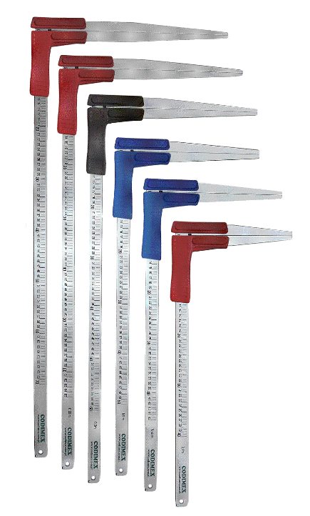 Średnicomierz ma naniesioną odporną na ścieranie skalę na dwóch stronach prowadnicy. Napisy oraz skale wykonane są farbą, która w wyniku zastosowanej technologii penetruje w głąb anodowanej powierzchni, zapewniając napisom i skalom bardzo dużą odporność na ścieranie. Dostępne są wersje skali z podziałką centymetrową (dokładność 0,5 cm) oraz z podziałką milimetrową (dokładność 1 mm).