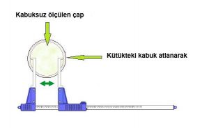 Çenelerin özel şekli ve “kör” uçları nedeniyle bu çap ölçerin ölçeği 5 cm’den başlar.