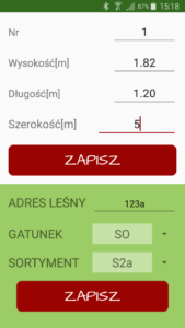 Kullanıcı ilk olarak orman adresini giriyor ve daha sonra çeşit ve türleri seçebiliyor. Bu parametreleri belirledikten sonra göğüs çapı/çap ve aynı zamanda ölçüm şekline bağlı olarak yükseklik/uzunluk (sırasıyla:dikili veya yatık ilaç) işlemine geçilebilir. Kullanıcının, çalışmanın her etabında yapılan ölçümleri silme veya düzenleme imkanı bulunmaktadır.